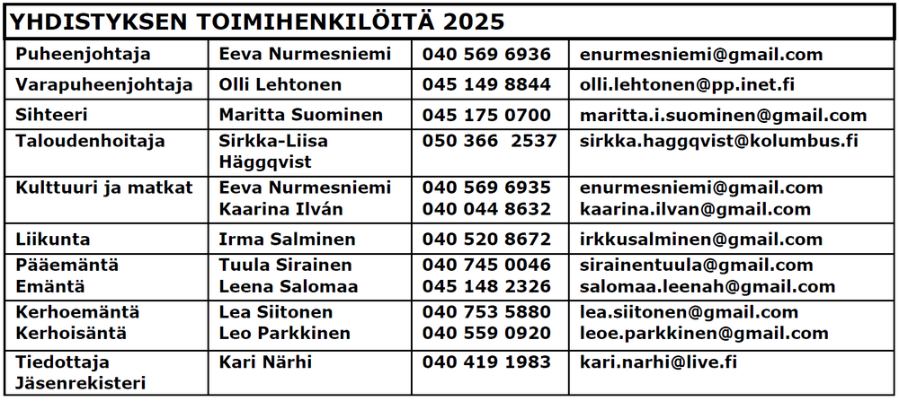 Sähköposti yhdistykselle yhteystiedoissa mainittuihin toimihenkilöiden osoitteisiin