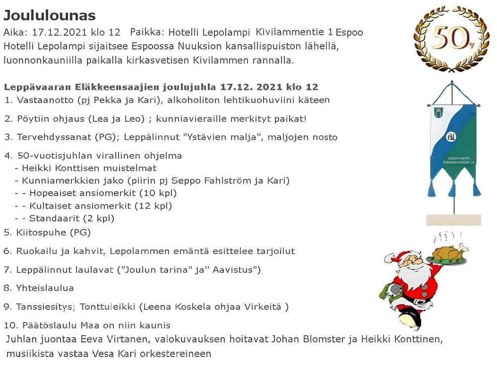 Ei toteutunut, 18.8. siirrettiin joululounaan yhteyteen 17.12.2021
