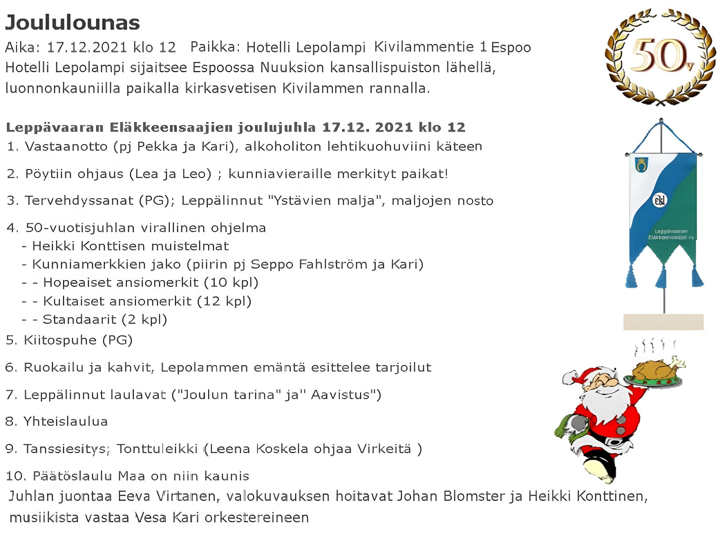 Ei toteutunut, 18.8. siirrettiin joululounaan yhteyteen 17.12.2021