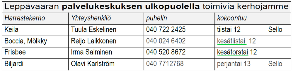 KERHOJEN TOIMINTA-AIKATAULUJA