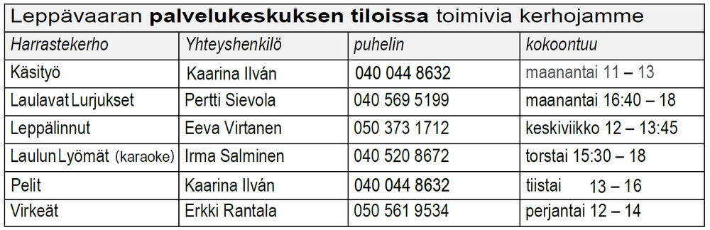 LEPPÄVAARAN PALVELUKESKUKSEN RUOKASALISSA,