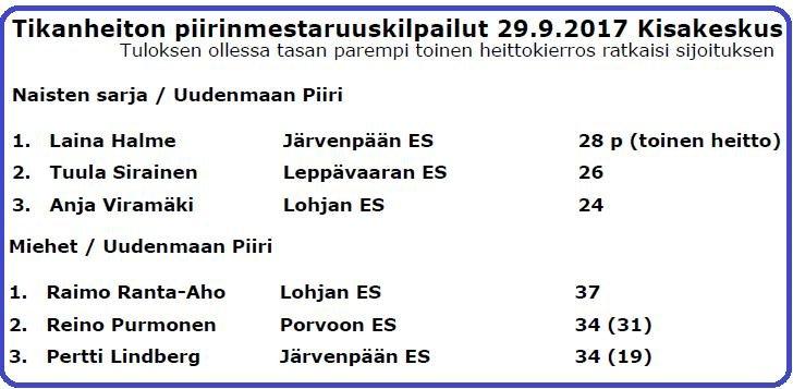 28.9.2018 Kisakeskuksessa piirin tikkamestaruuskilpailuista pronssimitalistit