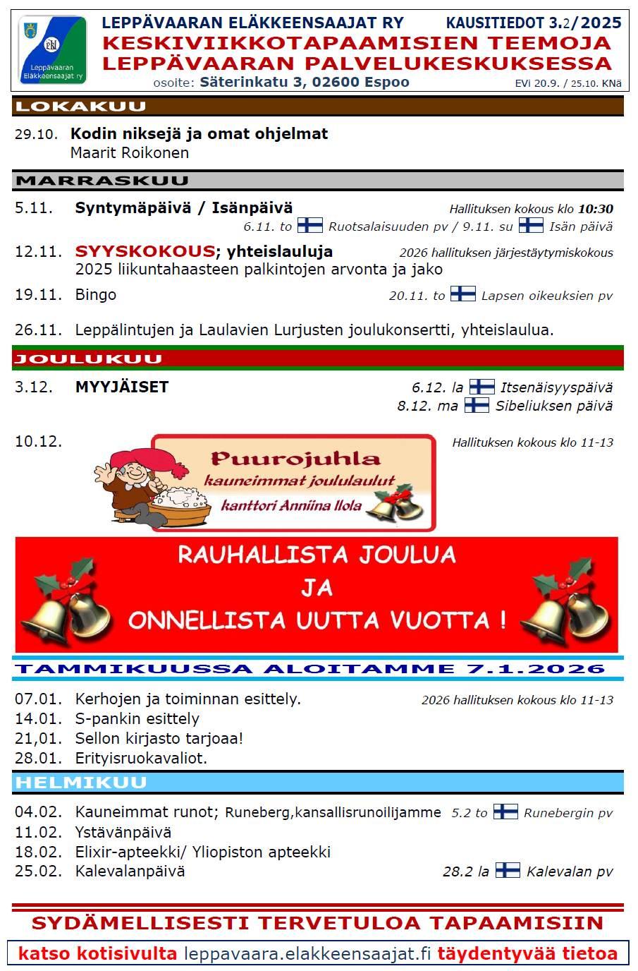 Viikkotapaamiset keskiviikkoisin klo 14 - 16
