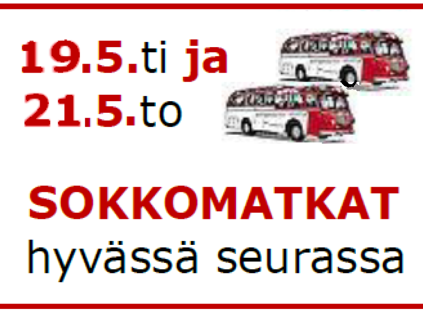 19.5. ti ja 21.5. to Sokkomatkat perinteiseen tapaan ennalta arvaamatonta reittiä hyvässä reurassa.