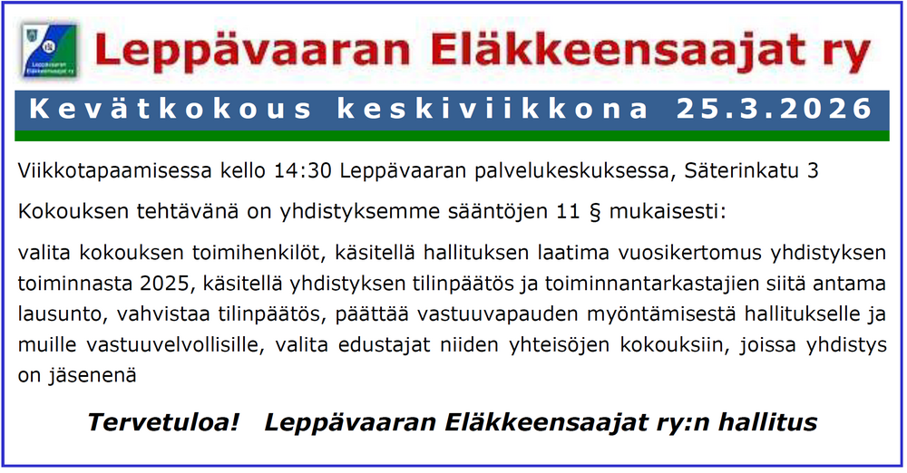 Kaikki yhdistyksen jäsenet jälleen liikkumaan keväällä 2026!! Liikkuminen on terveellistä, siitä on hyötyä jokapäiväiseen elämään ja liikunta parantaa elämisen laatua Suorituksiksi kelpaavat kaikki…