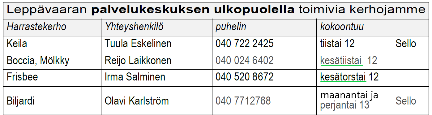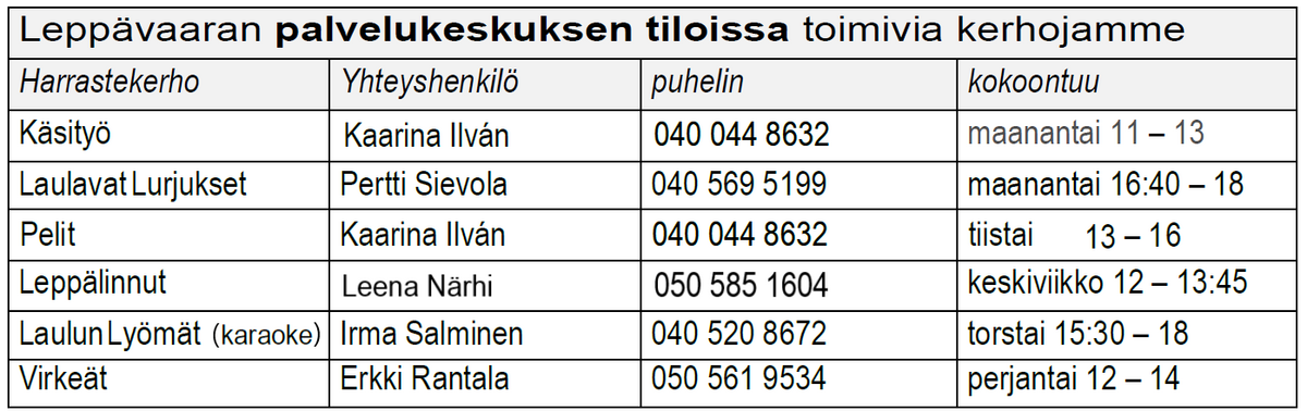 LEPPÄVAARAN PALVELUKESKUKSEN RUOKASALISSA,